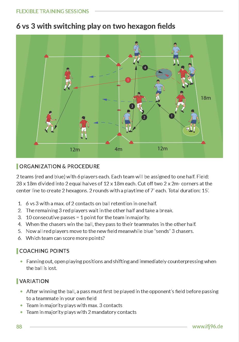 The special thing about his concept is the system of organizing the game forms. It can be used very flexibly and adapted to the number of players on the training day.