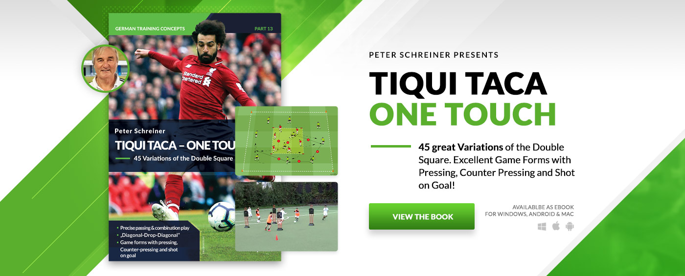 PDF Preview of "Rondos and Positional Games for Coaching of Tactical" German Top Level Tactics - Part 8Rondos and Positional Games for Coaching of Tactical Authors: Levent Sürme, Martin WengPages: 87Graphics: 61Exercises: 50 50 Rondos and Positional Games It is well known, that each training session consists of several parts. Rondos are now a firmly planned element in almost every session. There are probably very few coaches in the world who don’t include them in practices. Usually built in a rectangle, for example exercises in 4:4 + 2 or similar take place. In particular, Pep Guardiola, during in his time at FC Barcelona and later at FC Bayern Munich, made positional games more and more popular in many variations. But each Rondo has its own details and outcomes. This eBook includes: 10 Rondos for pressing 10 Rondos for offensive transitions 10 Rondos for playing deep 10 Rondos for attacking the final third 10 Rondos for speed up decision making Of particular value is the information regarding coaching, organization and possible variations. Peter Schreiner - IFJ96 The ebook by Levent Sürme and Martin Weng is something quite special. Very good, tactical preliminary remarks clarify the authors’objective: Five main topics (pressing, going on the offensive, in-depth playing, playing in the final third and swiftness of action) are introduced using vivid examples from professional soccer and impeccably rehearsed on the basis of 10 game forms. Of particular value is the information regarding coaching, organization and possible variations. This allows every coach to implement the rondos and game forms presented in targeted fashion during training, and thus prepare his players in motivated and diversified fashion for the demands of the 11 against 11 game. About the authors Levent Sürme Levent Sürme joined FC Augsburg at the age of 7 until he was 19. 2003, after he had to quit due to an injury, he started working for FC Augsburg as a youth coach for the U8 team. He has got the UEFA “A” Licence and worked under Thomas Tuchel and Manuel Baum who were head of the academy. He was head coach at FC Augsburg for 15 years. U8-U17. Last three years head coach of the U17 Bundesliga-Team. From 2018 to 2020 he was the head coach of the U15-Team at RB Leipzig. With the beginning of this season he works for SKY as an analyst for the Champions League matches. He also holds seminars for some Football-Associations in Germany and the Turkish-Football-Federation. Martin Weng Martin Weng joined FC Augsburg at the age of 11 and played there until the U19 team. After that he played for several years in the amateur field and started his coaching career at the age of 28 as a player-coach. He has got the UEFA “A” Licence and studied business administration (diploma thesis was the marketing of FC Augsburg). From 2016 to 2018 he was assistant coach of the FC Augsburg U17 Bundesliga-Team. Since 2018 he is head coach of the first team at the bavarian amateur club FC Gundelfingen. He is also coach at the talent development programm from the german football association (U11-U14).