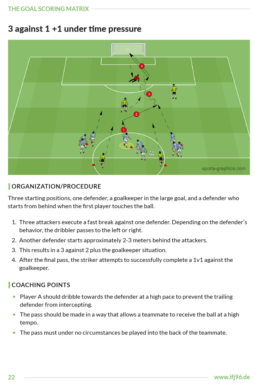 This eBook is structured into two focused sections. The first part delves into counterattacks, providing a comprehensive look at situations leading to 1v1 against the goalkeeper. Schreiner presents a range of training scenarios, from 1 against 0 to 3 against 2, emphasizing time pressure and tactical decision-making. The second part zeroes in on the climactic 1v1 standoff with the goalkeeper, outlining four strategic methods to gain the upper hand.