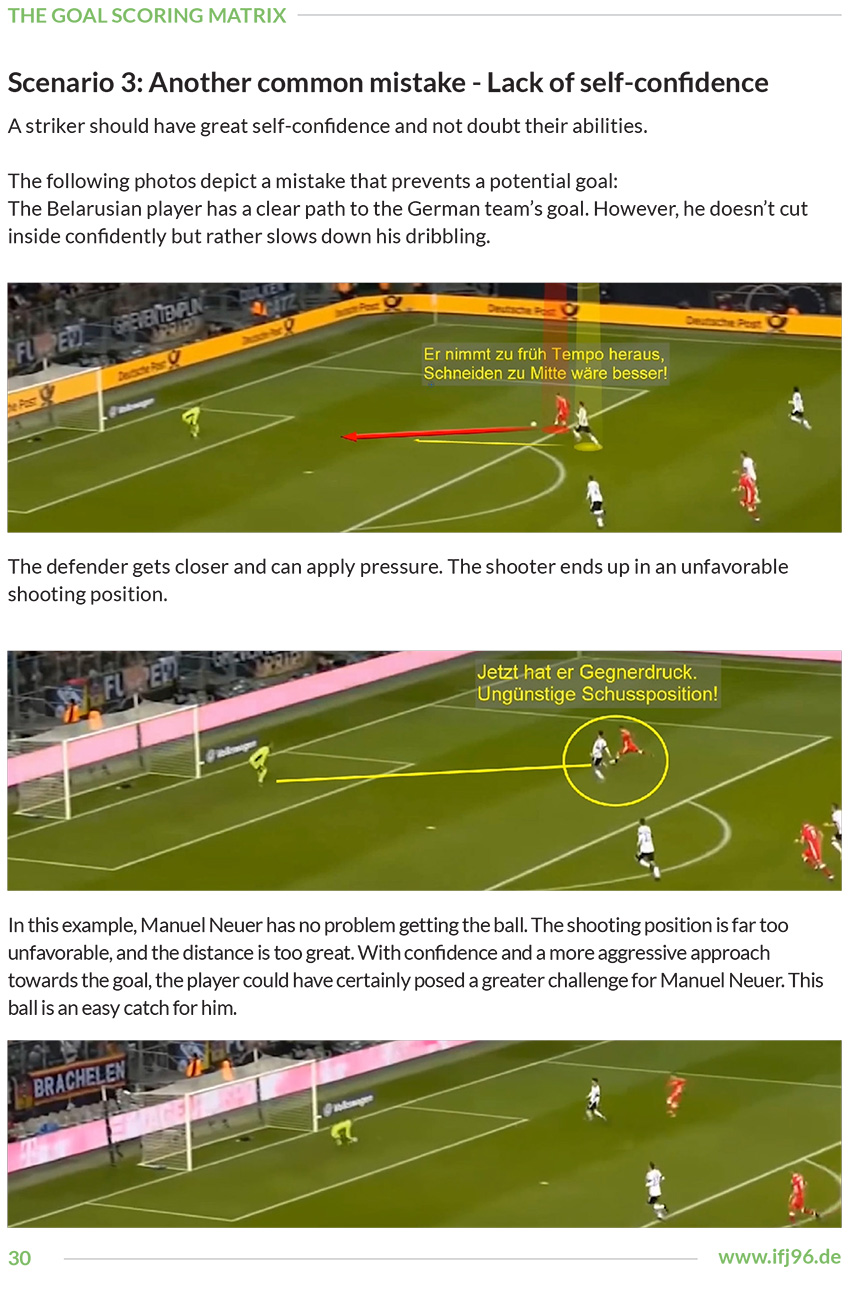 With 37 detailed drills, complete with coaching points, this book offers a hands-on approach to training. These exercises are designed to sharpen decision-making skills and execution in crucial game moments. Additionally, the eBook provides deep analyses of game scenes, identifying common mistakes strikers make and offering strategies to rectify them.