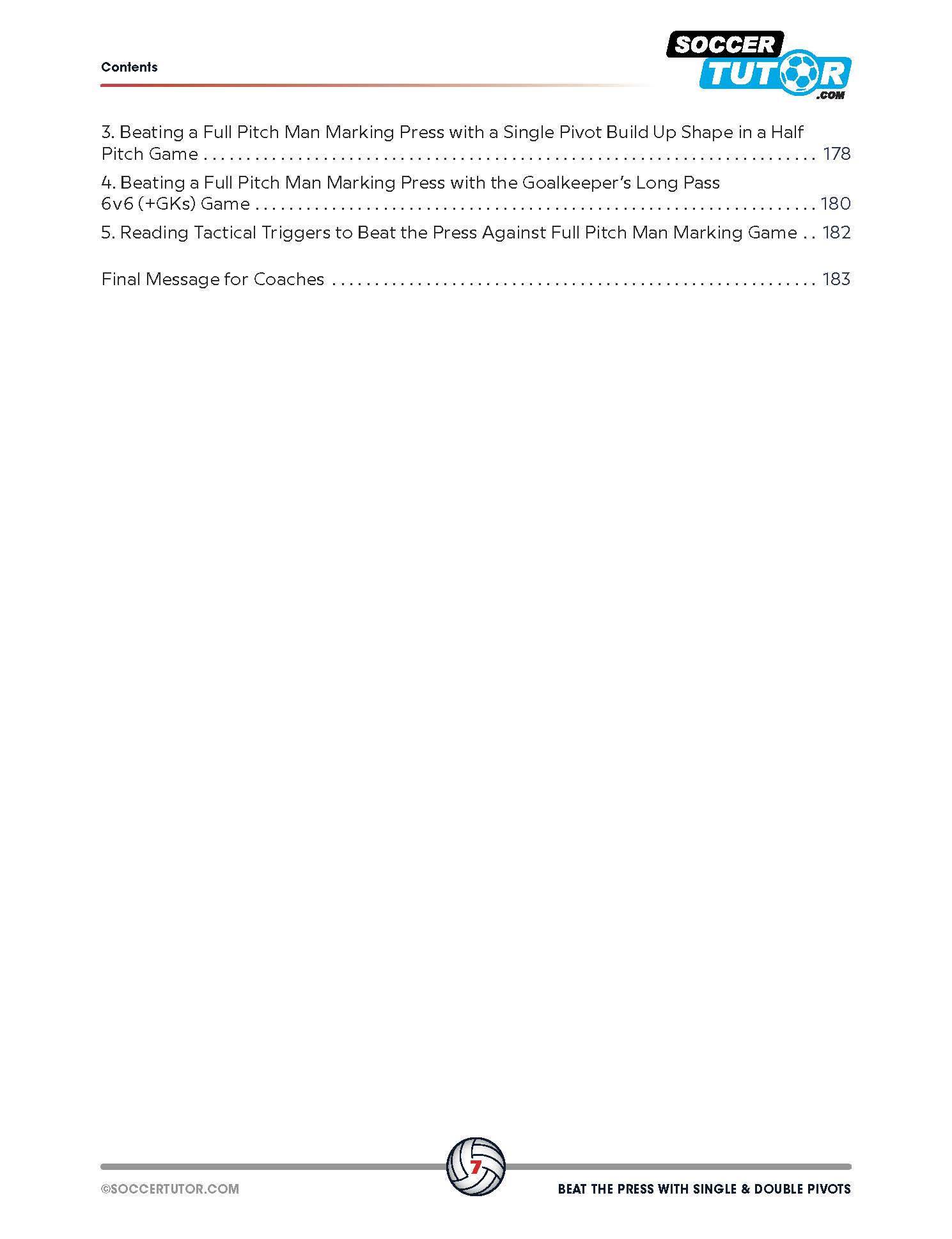 Discover how top coaches beat the press using single and double pivots (4-3-3 and 4-2-3-1). This book breaks down their 80+ tactics in detail and gives you 53 practices, 9 ready-to-use training sessions to coach these build-up strategies with your team.