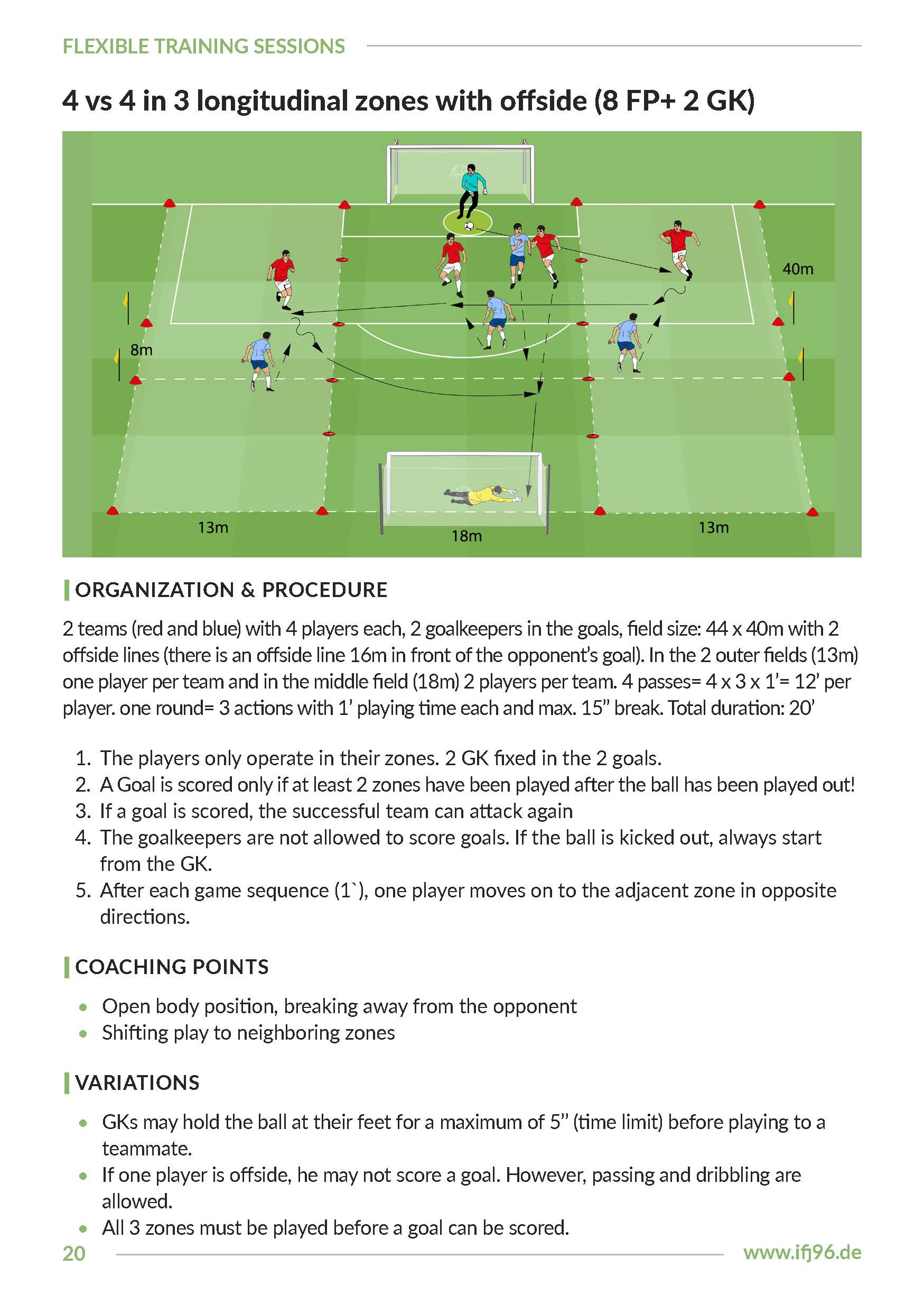 The coach can individually adapt field size, game times, repetitions, and total duration to the respective age group and skill level.